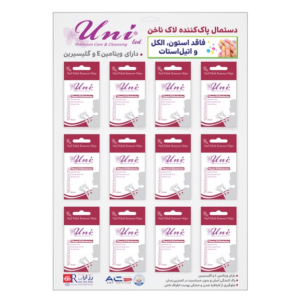 لاک پاک کن ساشه ای یونی لد مدل بدون استون و الکل حاوی ویتامین E جعبه 10عددی