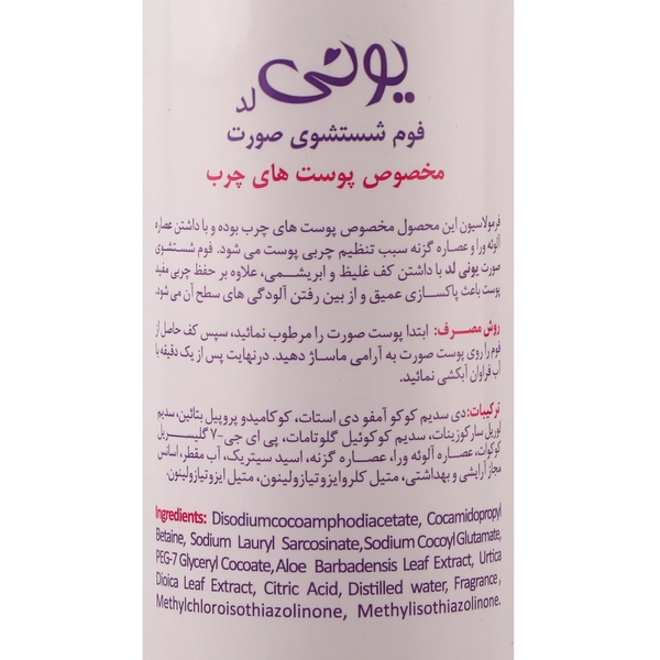 فوم شستشوی صورت یونیلد مدل پوستهای چرب حاوی عصاره آلوئهورا و گزنه – حجم ۲۰۰ میلیلیتر