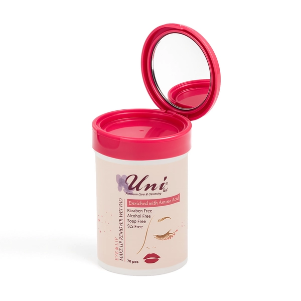 پد مرطوب پاککننده آرایش یونیلد مدل پوست چرب غنیشده با اسیدهای آمینه – آینهدار بسته ۷۰ عددی